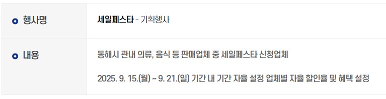 9월 15일(월)부터 21일(일)까지, 동해 전 지역의 음식점, 카페, 의류점, 잡화점 등에서 자율 할인 및 다양한 이벤트가 진행되며,
