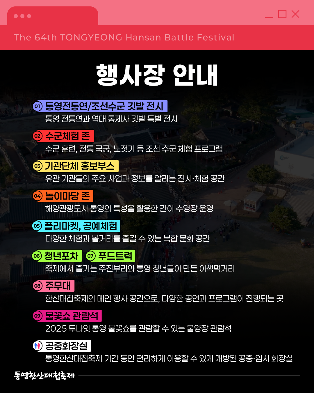 - 주최/주관: 통영시, 통영한산대첩문화재단