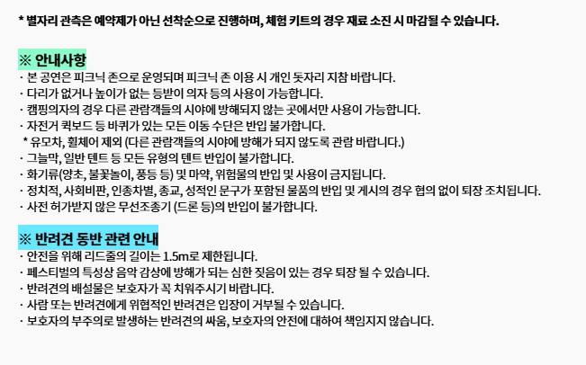 - 피크닉 존 운영: 돗자리·의자 사용 가능