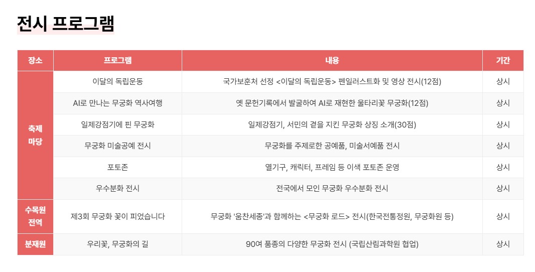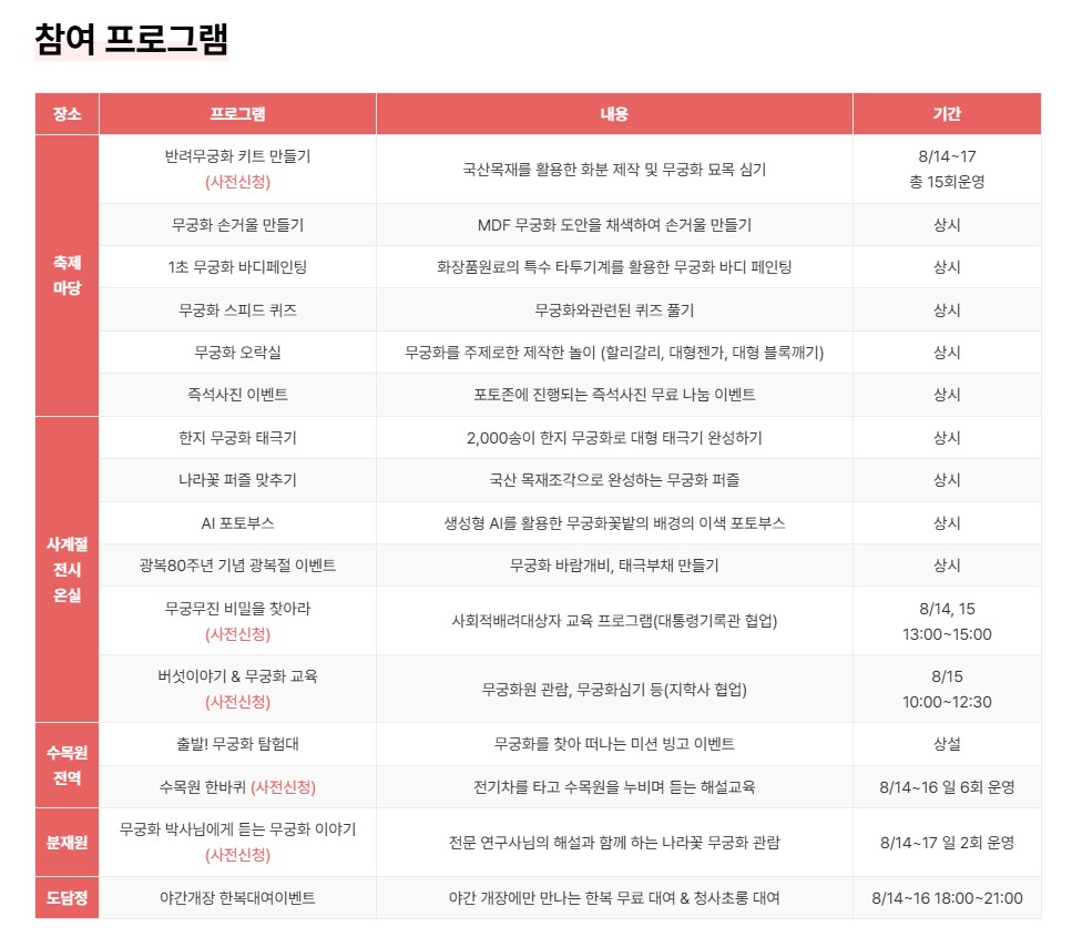 - 행사명: 광복 80주년 기념 나라꽃 무궁화 대축제
