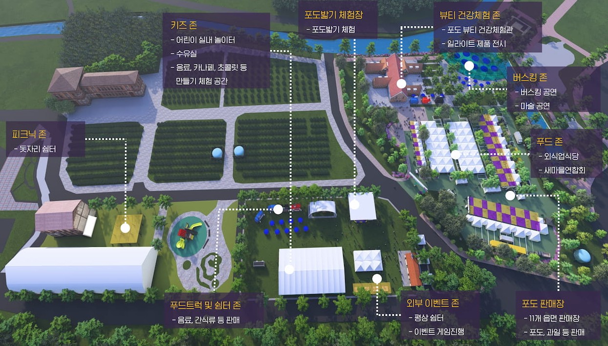 이번 축제는 단순한 과일 행사가 아니라, 포도와 와인, 문화와 국악, 가족 친화 체험까지 아우르는 종합 축제로 기획되었습니다.