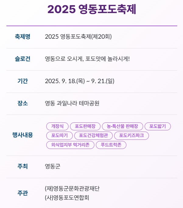 이번 글에서는 2025 영동포도축제 일정과 주요 프로그램을 알차게 정리해드릴게요.