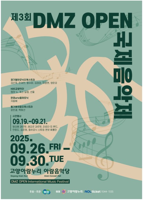 특히 9월 6일 임진각 평화누리 야외공연장에서 열리는 DMZ 오픈 콘서트와, 9월 26일부터 30일까지 고양 아람누리에서 열리는 국제 음악제는 매년 조기 마감되는 인기 프로그램입니다.